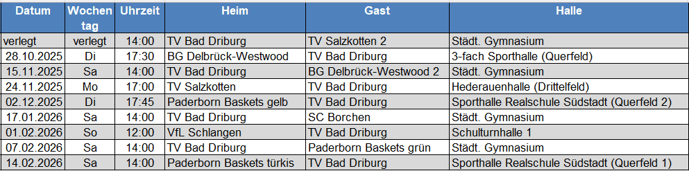 ... ...Aktuelle Ergebnisse und Tabellenstände der U12 Basketball-Kreisliga Paderborn: